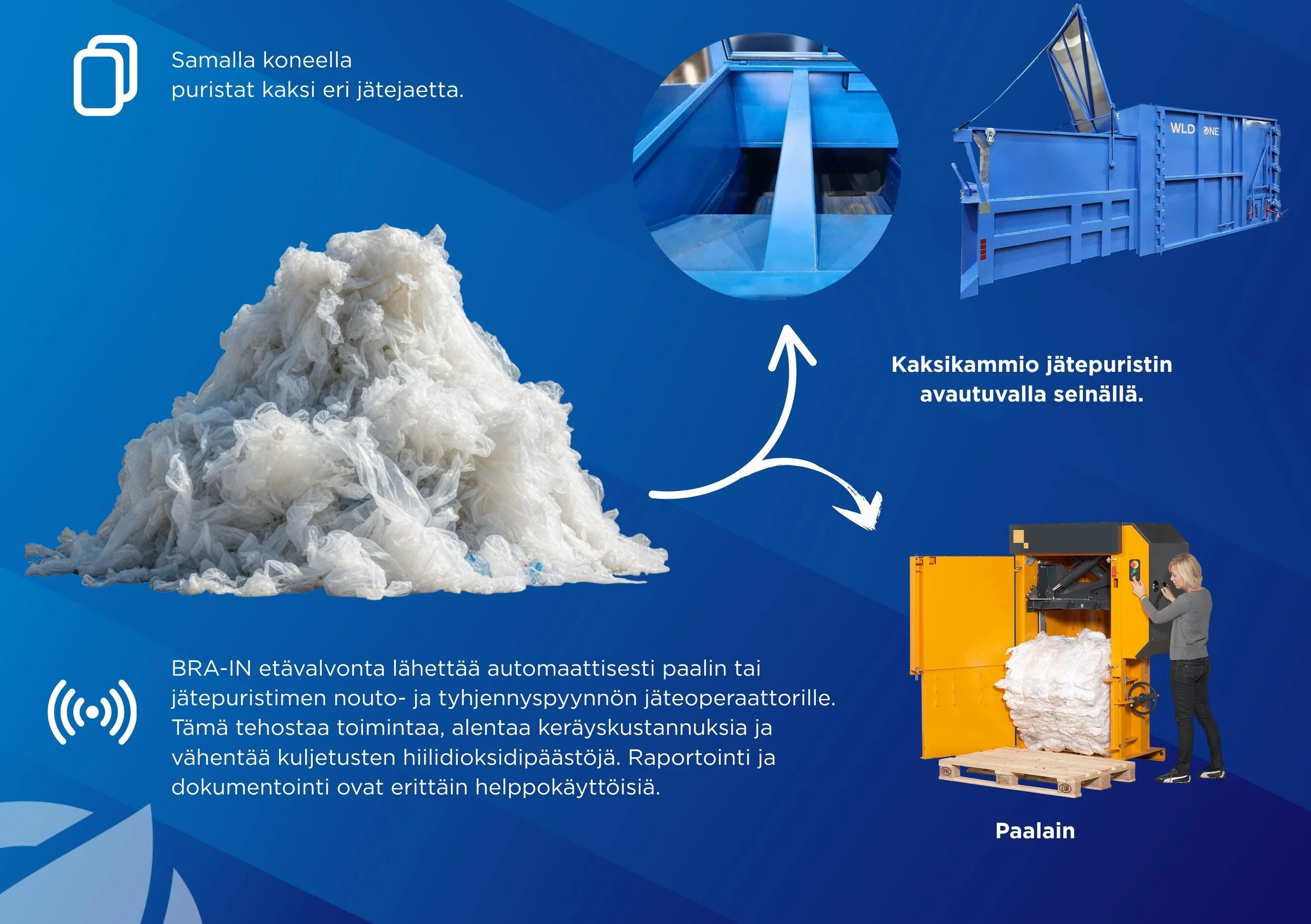 Nykyaikainen paalain voidaan lisäksi liittää BRA-IN-älyvalvontajärjestelmään, joka esimerkiksi lähettää automaattisesti noutopyynnön jätehuollon operaattorille paalin valmistuttua. Tämä digitaalinen ominaisuus vähentää manuaalista työtä ja varmistaa, että paalit haetaan ajallaan. BRA-IN tarjoaa käyttäjälle myös monia muita hyötyjä.